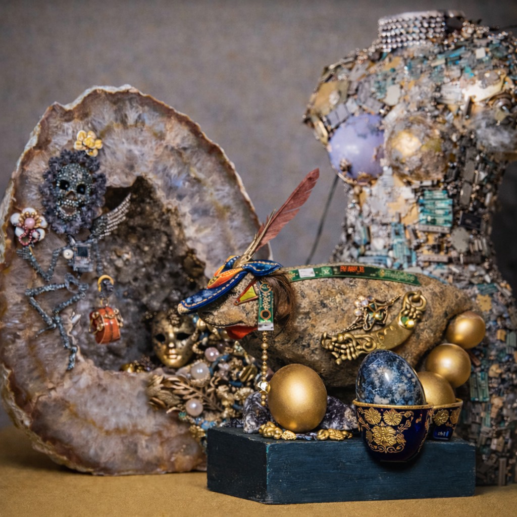 Аркадий (Ари) Черноморский представляет серии работ в смешанной технике, исследующие взаимосвязь тела, объекта и памяти. Скульптурные фигуры объединяют полудрагоценные камни, элементы ювелирных изделий, электронные компоненты, текстиль и переработанные материалы.